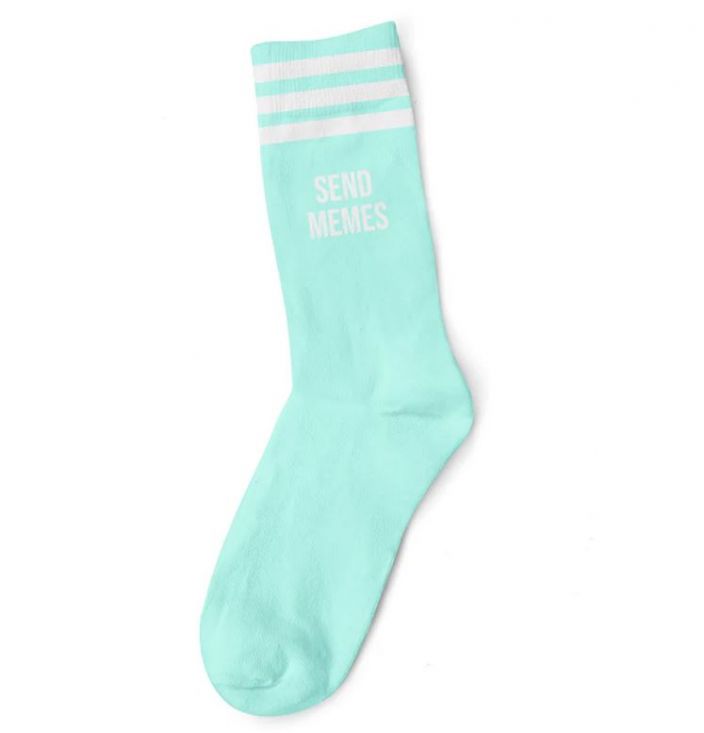 SEND MEMES WHITE BLUE SOCKS