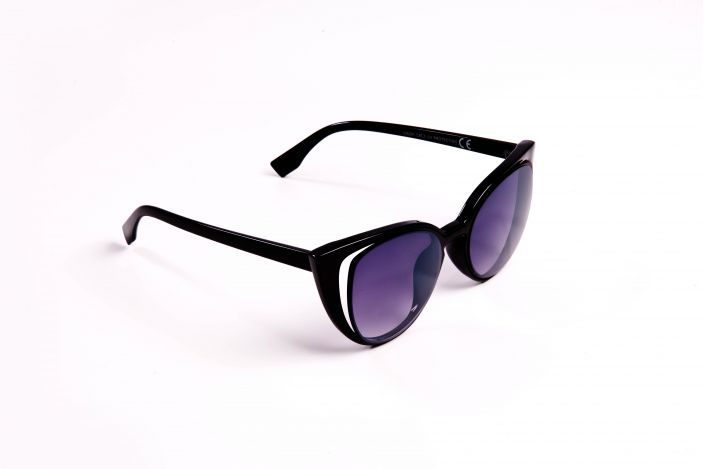 Lunettes de soleil noire yeux de chat avec découpe