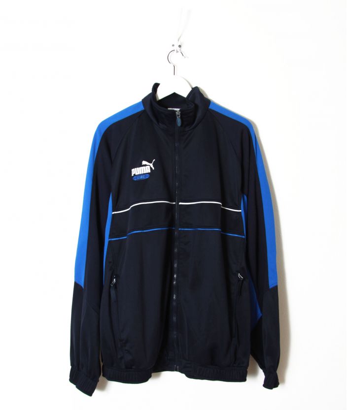 Vintage et aux accents terriblement 90's , cette veste bleu Puma accompagnera tous vos looks , pour leur donner une touche sport et rétro nineties !